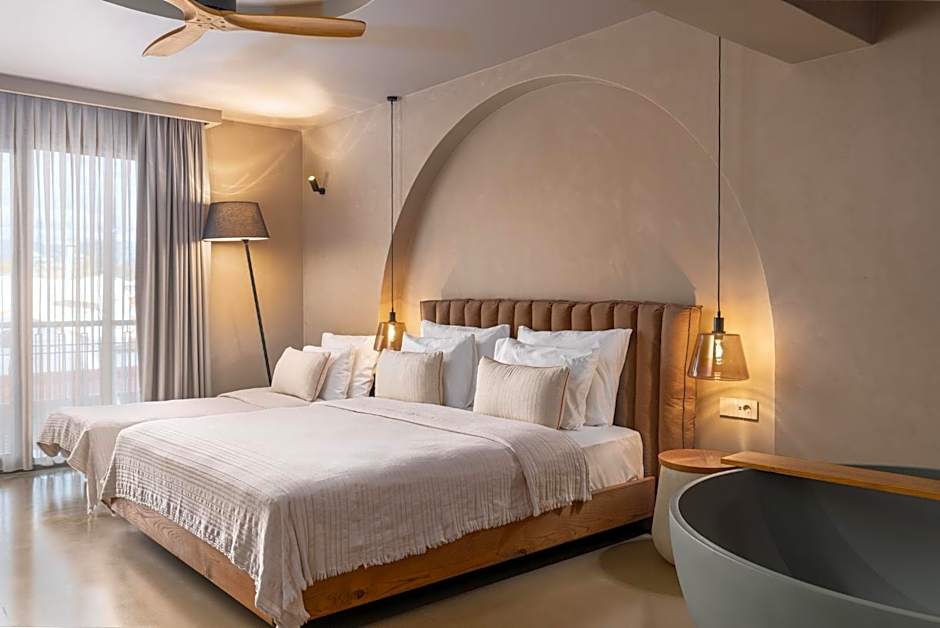 Providing free toiletries and bathrobes, this triple room includes a private bathroom with a bath, a shower and a bidet. The spacious air-conditioned triple room provides a flat-screen TV with streaming services, a mini-bar, a tea and coffee maker, a wardrobe as well as a quiet street view. The unit offers 2 beds.